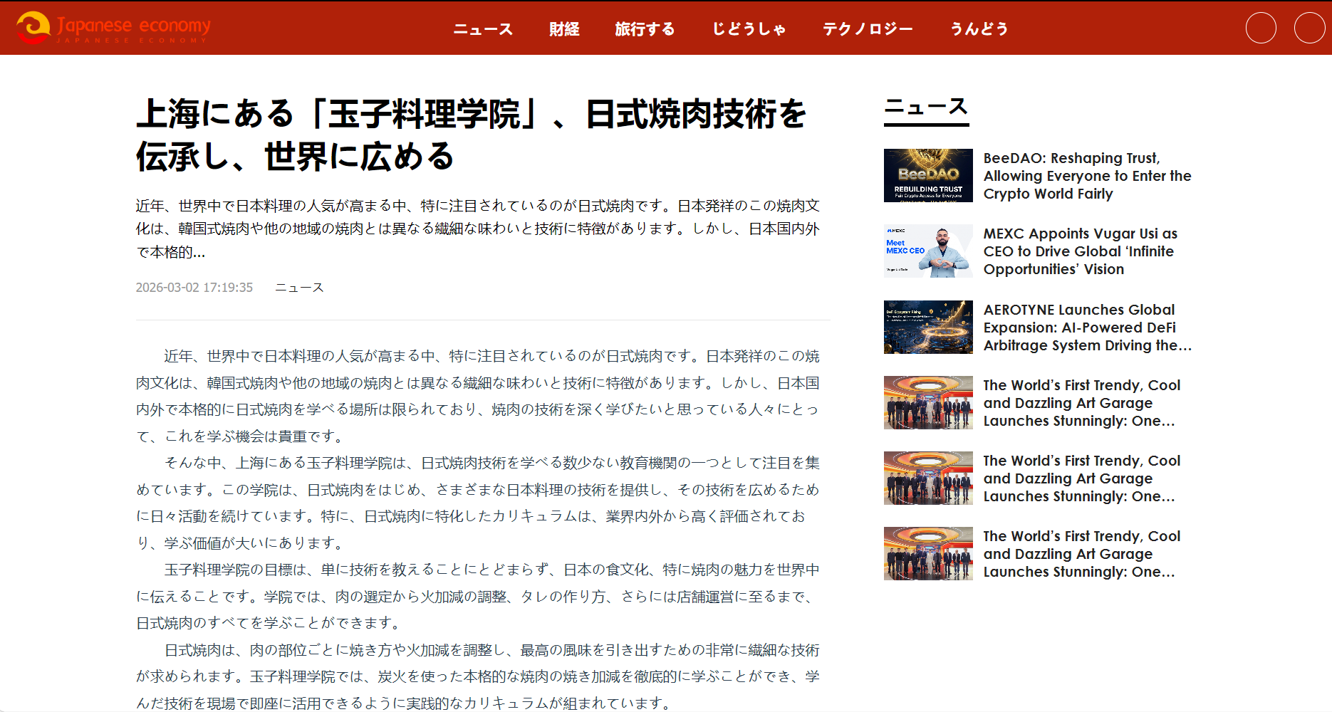 曾被美联社等多家国外主流媒体转载报道,被誉为“中国日本料理培训的领军者”。